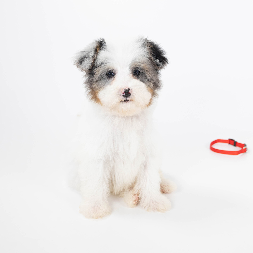 Their beautiful coats vary from charming traditional tri-color to delightful tri-color merle, and deep dark red tuxedos. Plus, their curly or wavy fur means very low to non-shedding, making them extra snuggle-friendly for families with mild allergies.