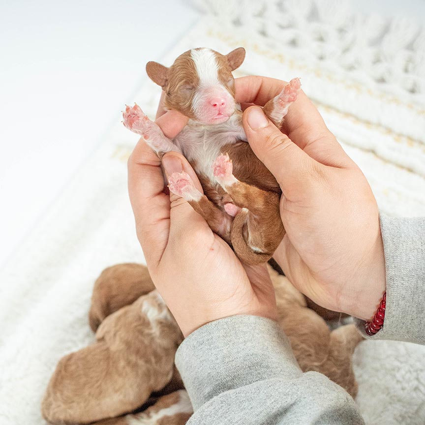 Each puppy experiences Early Neurological Stimulation (ENS) to enhance immune function and develop emotional stability. This professional approach produces more self-assured, flexible companions.
