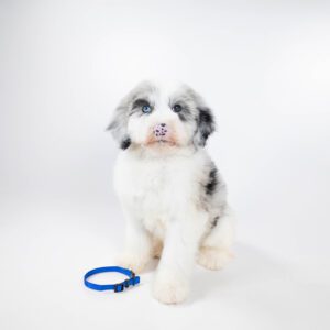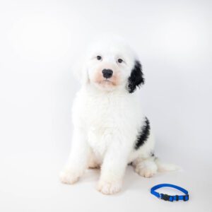 We offer our exclusive Checkpoint Training program, where Sheepadoodle puppies learn essential skills before they go home. This includes crate training, potty training, and basic obedience commands. Our goal is to make the transition into your home as smooth as possible and give you a well-started, confident puppy.