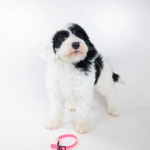 Sheepadoodles are known for their striking black-and-white coats, though some can have gray, cream, or even tri-color patterns. Their soft, wavy coats give them that “teddy bear” look that everyone falls in love with. Whether you choose a standard, medium, or mini Sheepadoodle, you’ll have a beautiful, photogenic companion with an irresistibly soft coat.