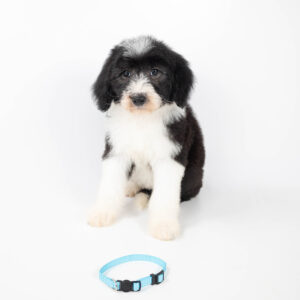 Our standard Sheepadoodle puppies typically grow to be between 50 and 80 pounds. They are perfect for families who love a playful, medium-to-large dog that is intelligent, affectionate, and great with kids.